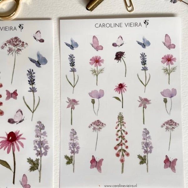 Stickervellen met illustraties van 'Summer Favourites' bloemen. Leuk om in je journal te plannen, als sluitsticker voor een envelop of om met de kinderen mee te knutselen.