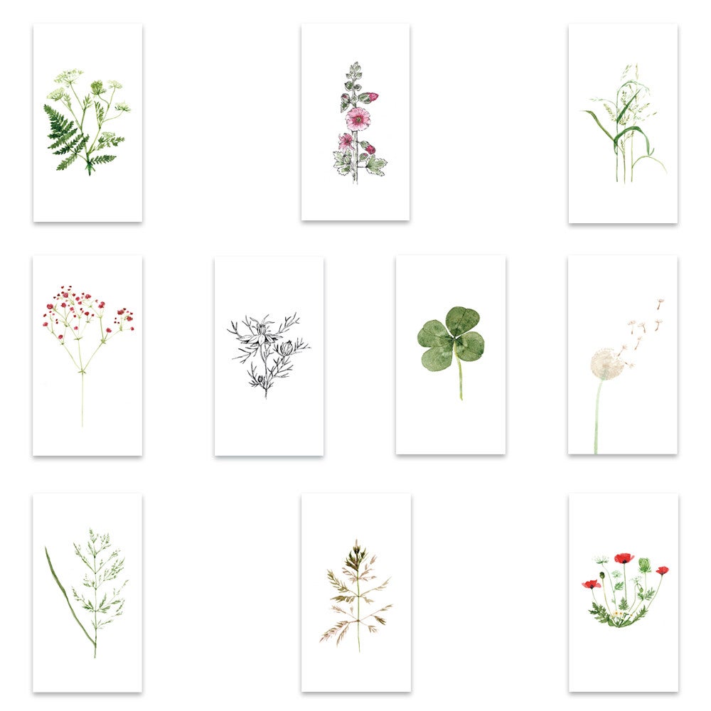 Mini bloemen kaartje met een botanische illustratie. Leuk om bijvoorbeeld met een gaatje en een touwtje een kado mee te versieren of aan een boeket bloemen.