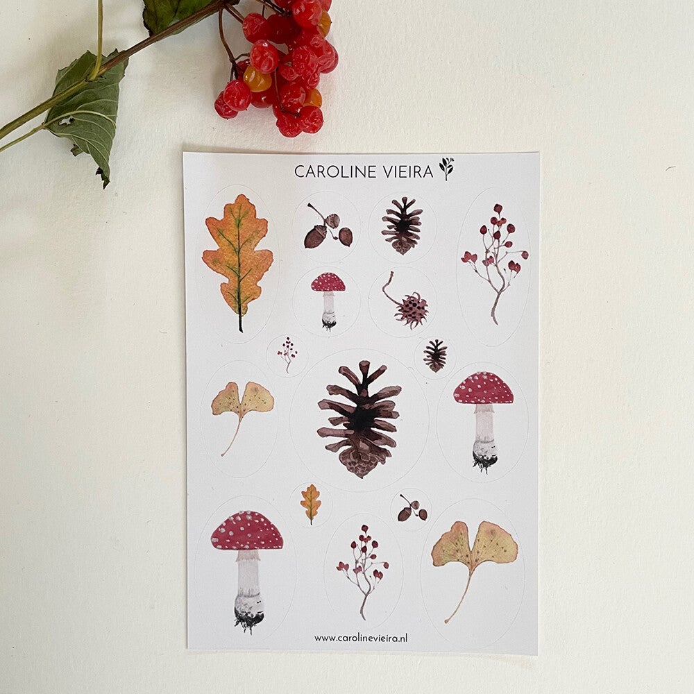 Een set van 16 herfst stickers met illustraties in verschillende kleuren en formaten. Leuk om in je journal te plannen, als sluitsticker voor een envelop of om met de kinderen mee te knutselen.