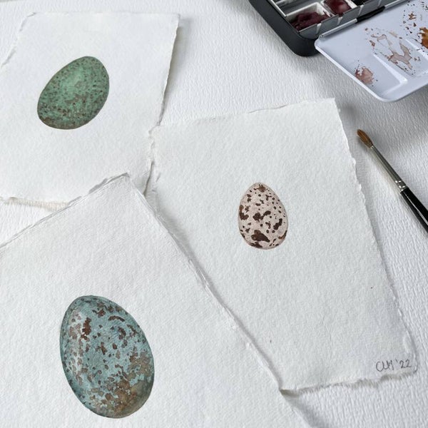 Een origineel aquarel illustratie van een merel ei.